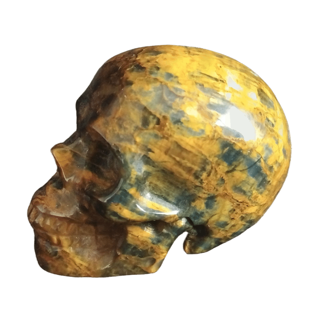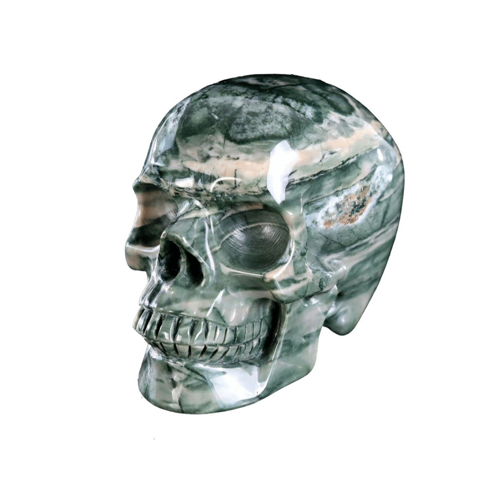 Each of these crystal skulls is a unique being, hand-carved from the bones of the Earth: Yooperlite, Unakite, Jasper, Quartz, and more.